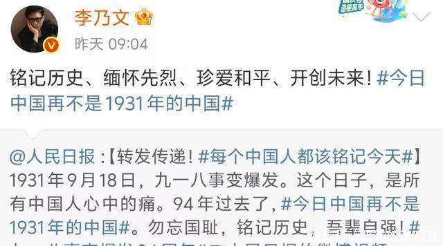 打开李乃文的社交平台可以看到,在电影上映当天,他没有发布任何与电影、票房有关的任何信息。 他只发布了两条“特殊”信息,那就是“铭记历史”。